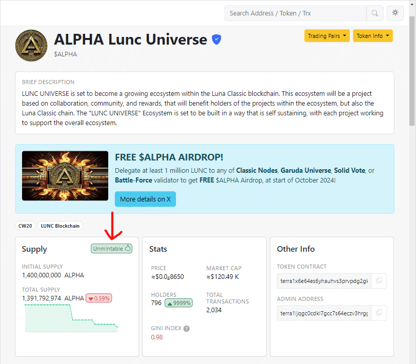 When investing in LUNC-based tokens, it's crucial to understand the mintability status. Unmintable tokens generally offer greater stability and potential value appreciation. By checking the minter property and ensuring that both minter and admin privileges are renounced, you can identify tokens with a more secure and predictable supply.